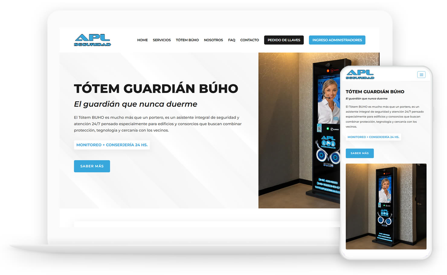 Objetivo Principal: Rediseñar el sitio web estilo one page de empresa APL Seguridad. Se mejoró el diseño en general, se corrigieron errores de diseño y se agregaron funciones, además que se adapte correctamente a dispositivos móviles (celulares y tablets).