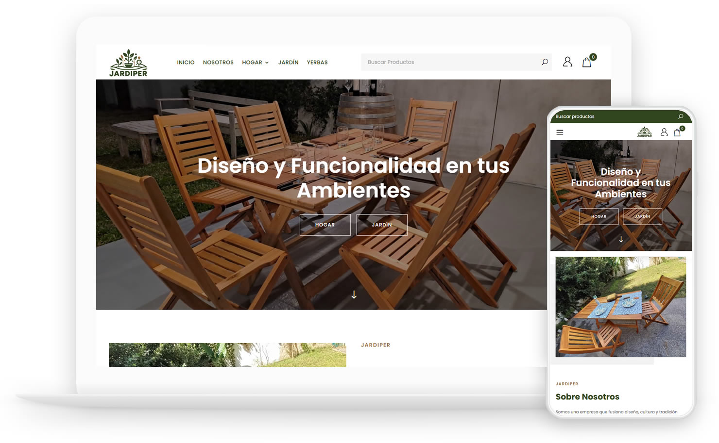 Objetivo Principal: Desarrollar la tienda online para Jardiper (Muebles Hogar y Jardín). Lograr un sitio de fácil navegación para el usuario y que se adapte correctamente a celulares y tablets (responsive design).